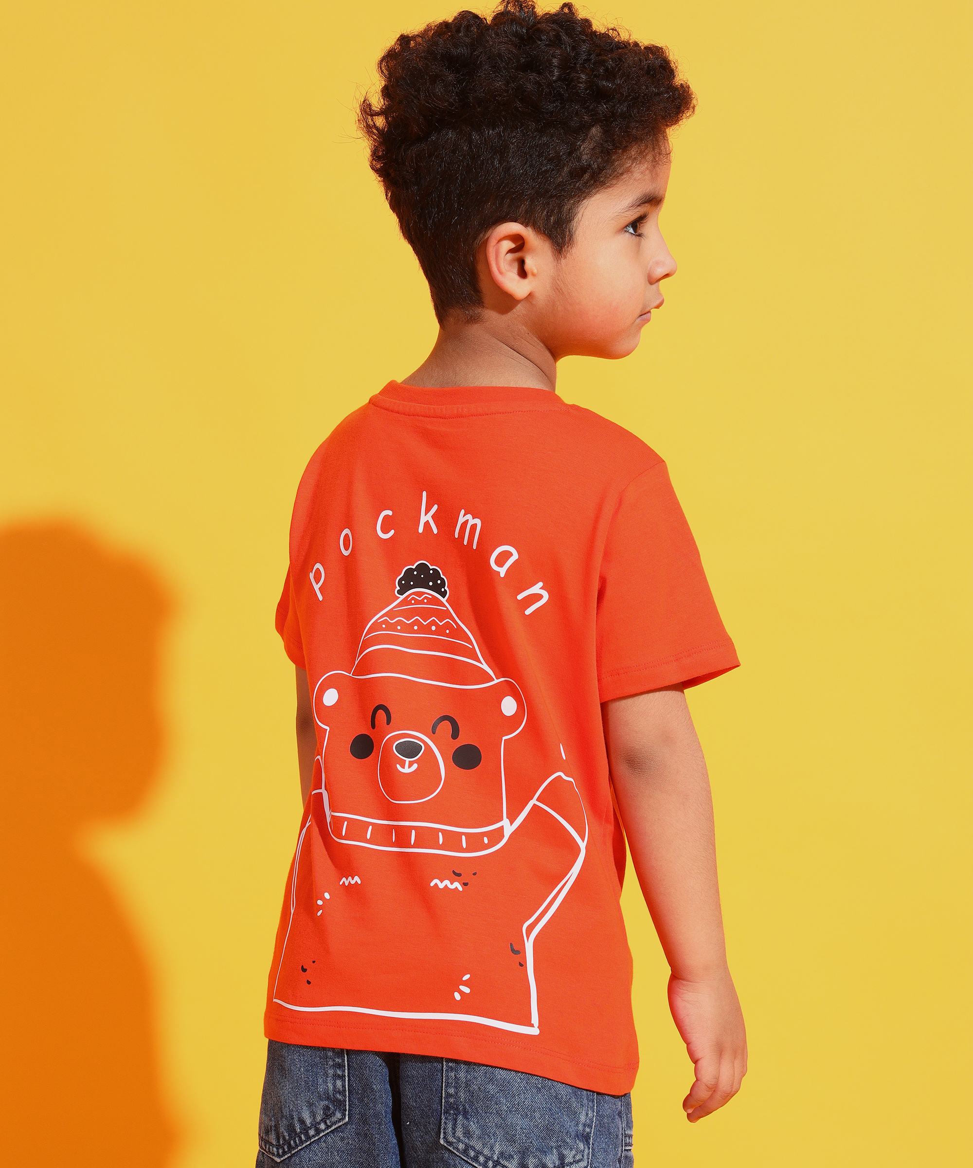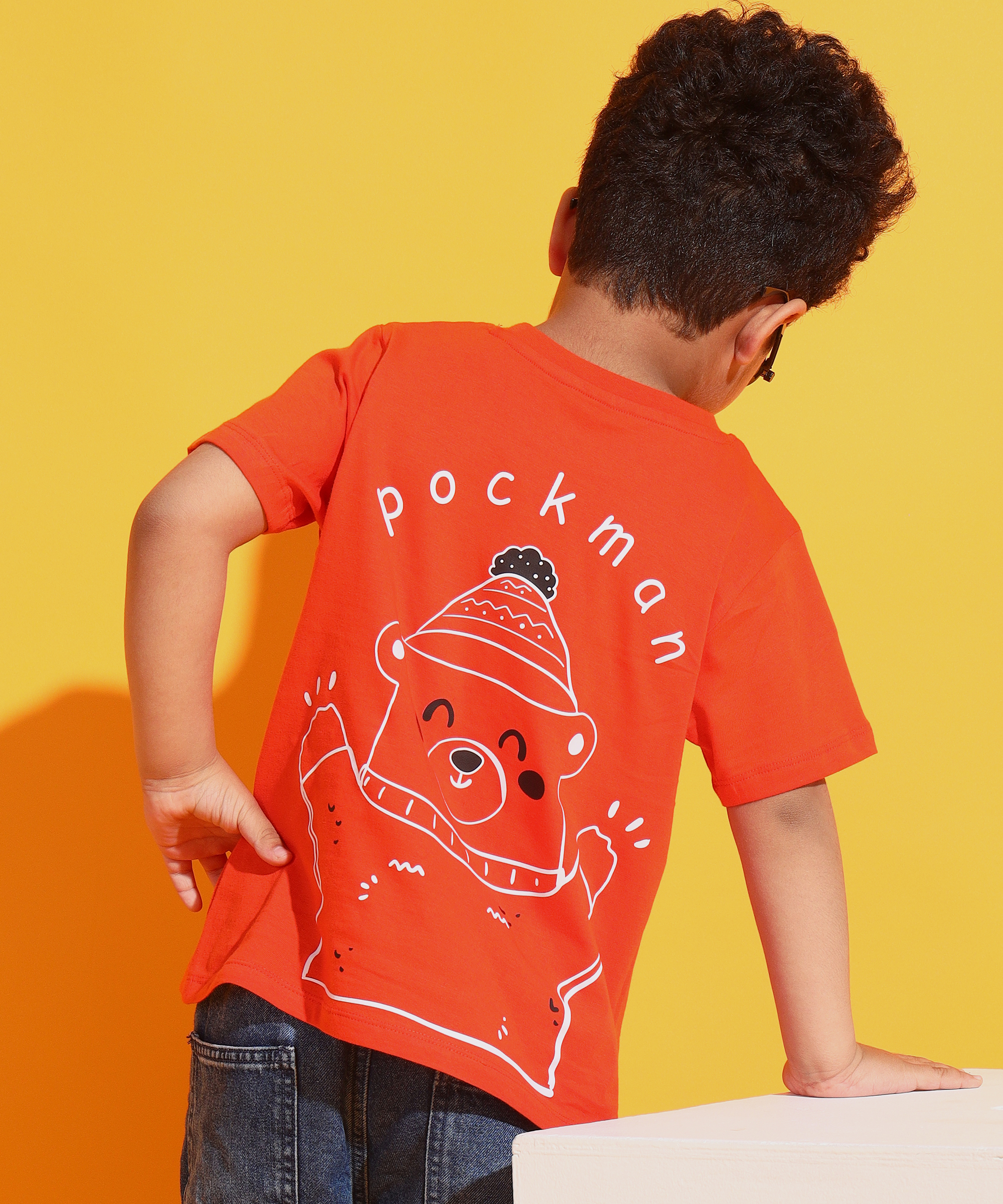 PockMAN Boy’s Printed Regular Fit Pure Cotton Round Neck T-Shirt is perfect for kids who love fun and playful designs. Made from soft and breathable 100% pure cotton, it ensures all-day comfort while adding a pop of personality to your child’s wardrobe. The T-shirt features a vibrant and durable print on the back and front, showcasing popular cartoon characters and is available in multiple color combinations. The classic round neck and short sleeves make it a versatile choice for casual outings, school, or playtime. Pair it with denim jeans or shorts for a cool, casual look. Add fun accessories like a cap or a character-themed backpack for a coordinated style. Layer it with a light jacket or hoodie to highlight the graphic print while keeping warm. PockMAN printed T-shirt is a great addition to any young fan’s wardrobe, offering a mix of comfort, creativity, and vibrant charm.