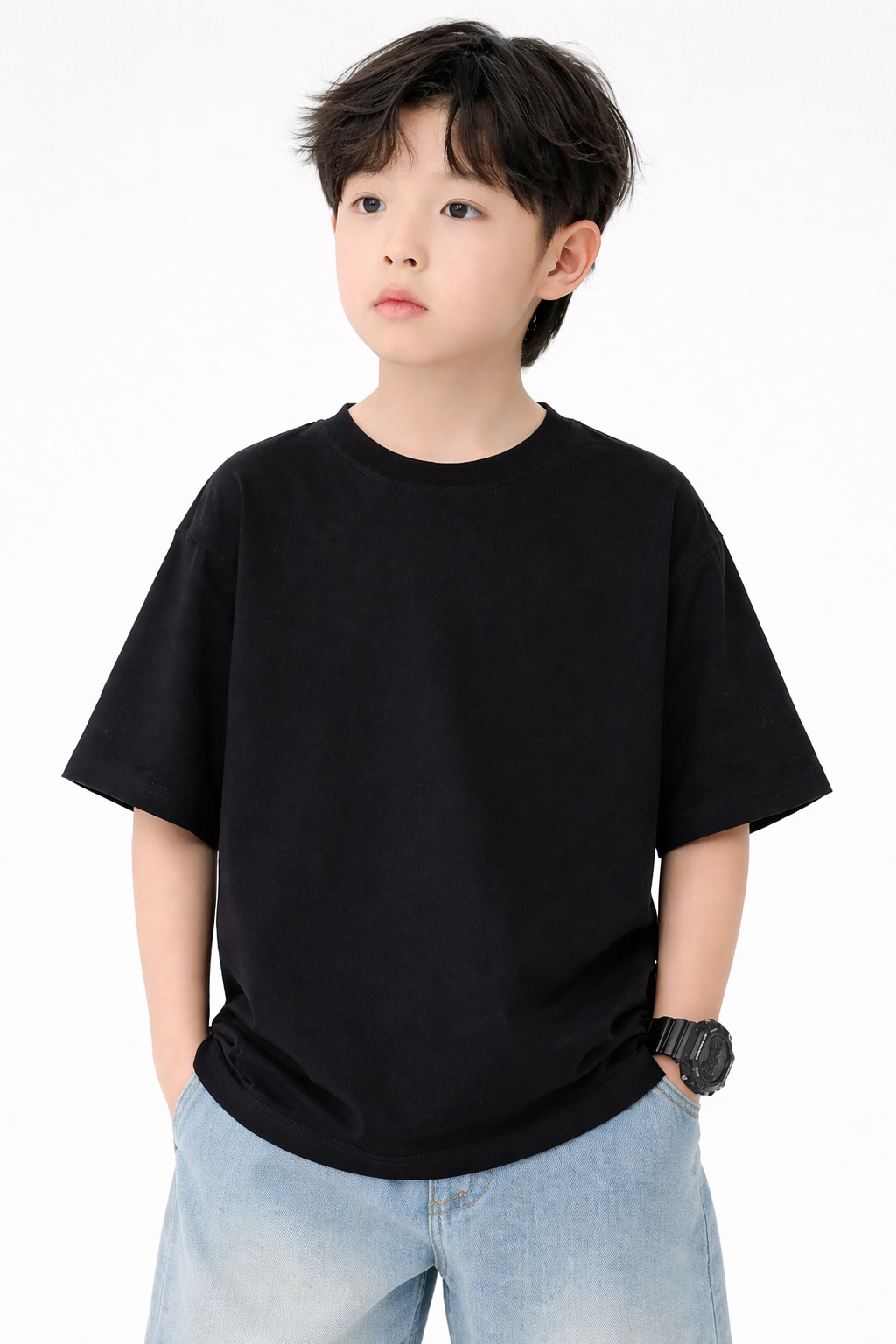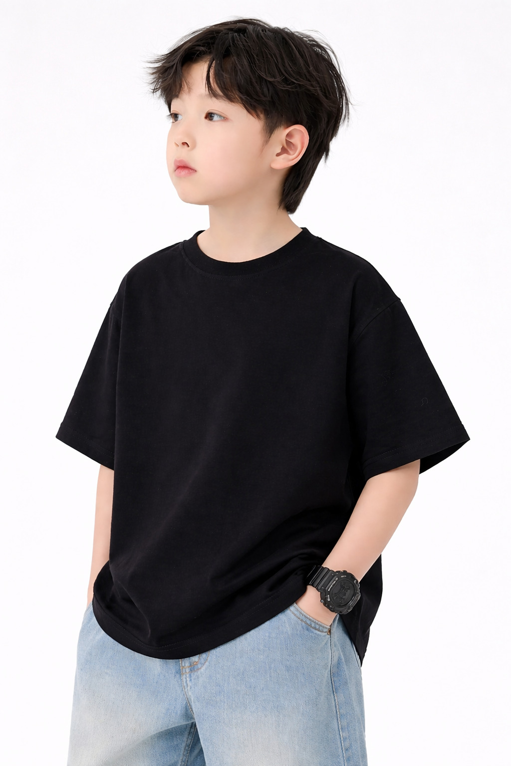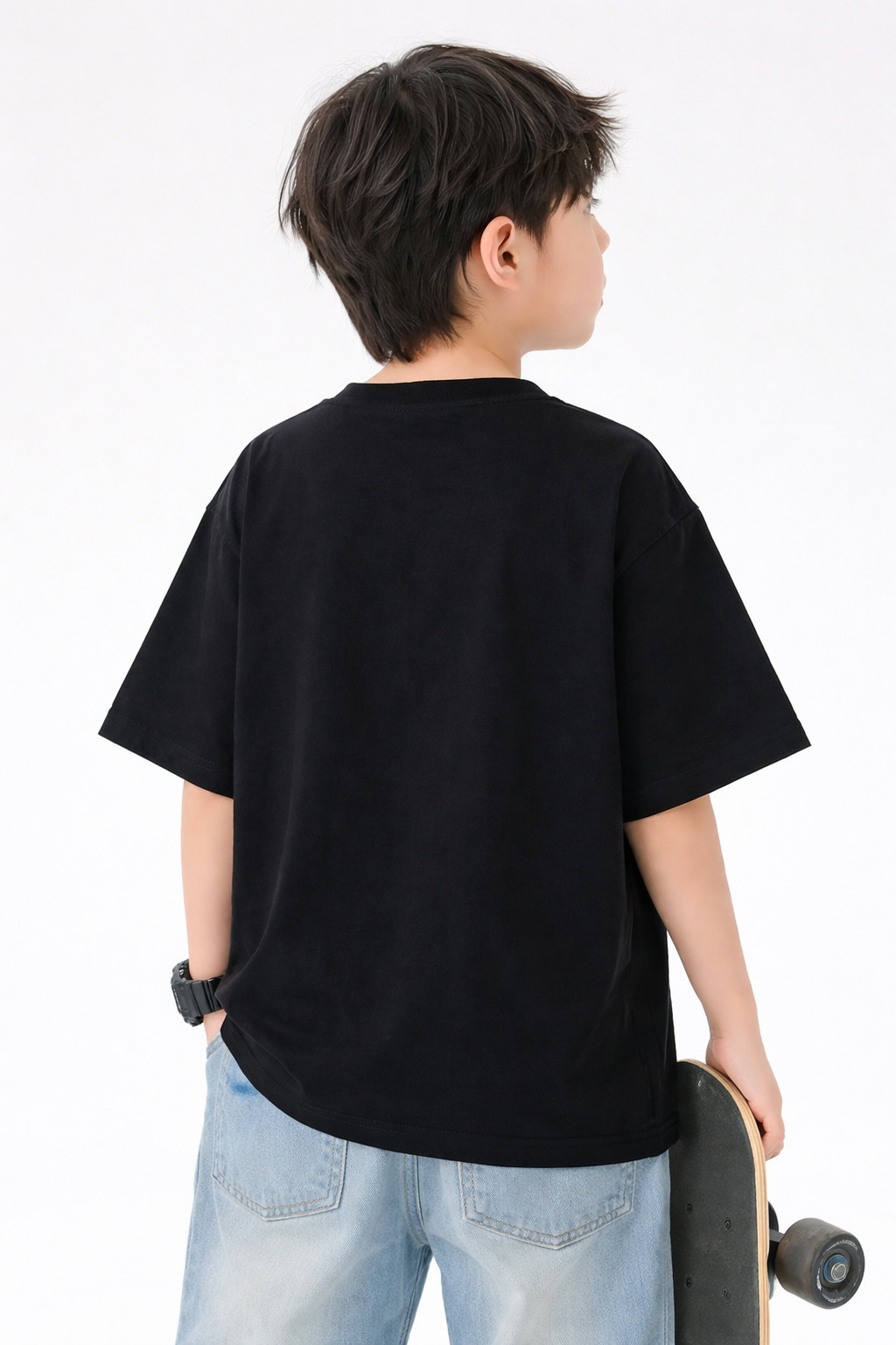Home Kids BOYS Oversized T-shirt Pockman Boys Solid Pure Cotton Black Oversized Fit T-shirt