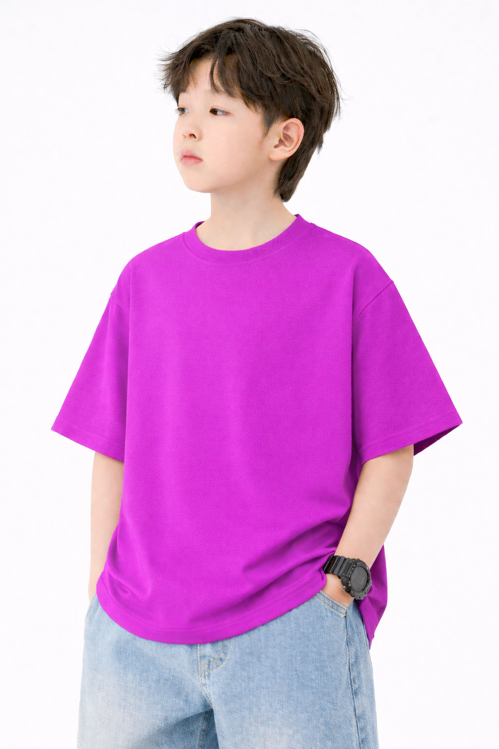 Available in a wide range of solid colors, this stylish oversized tee is a must-have for modern kids fashion.”