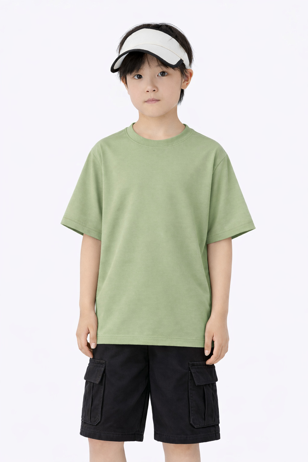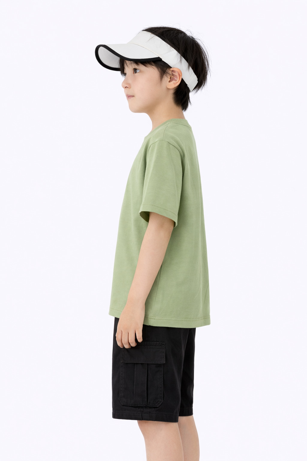 Home Kids BOYS Oversized T-shirt Pockman Boys Solid Pure Cotton Dull Green Oversized Fit T-shirt