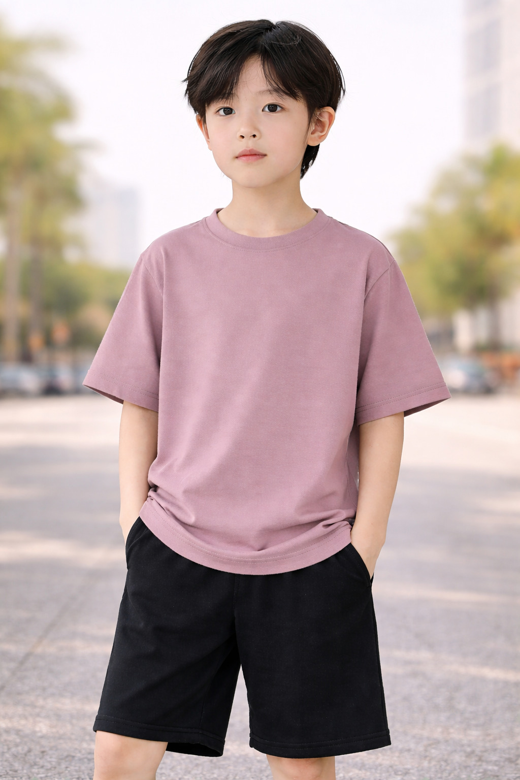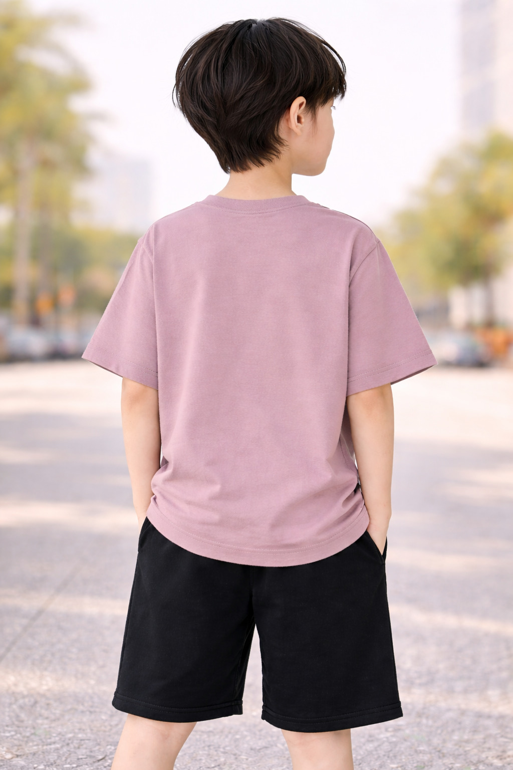 Home Kids BOYS Oversized T-shirt Pockman Boys Solid Pure Cotton Dusty Lavender Oversized Fit T-shirt