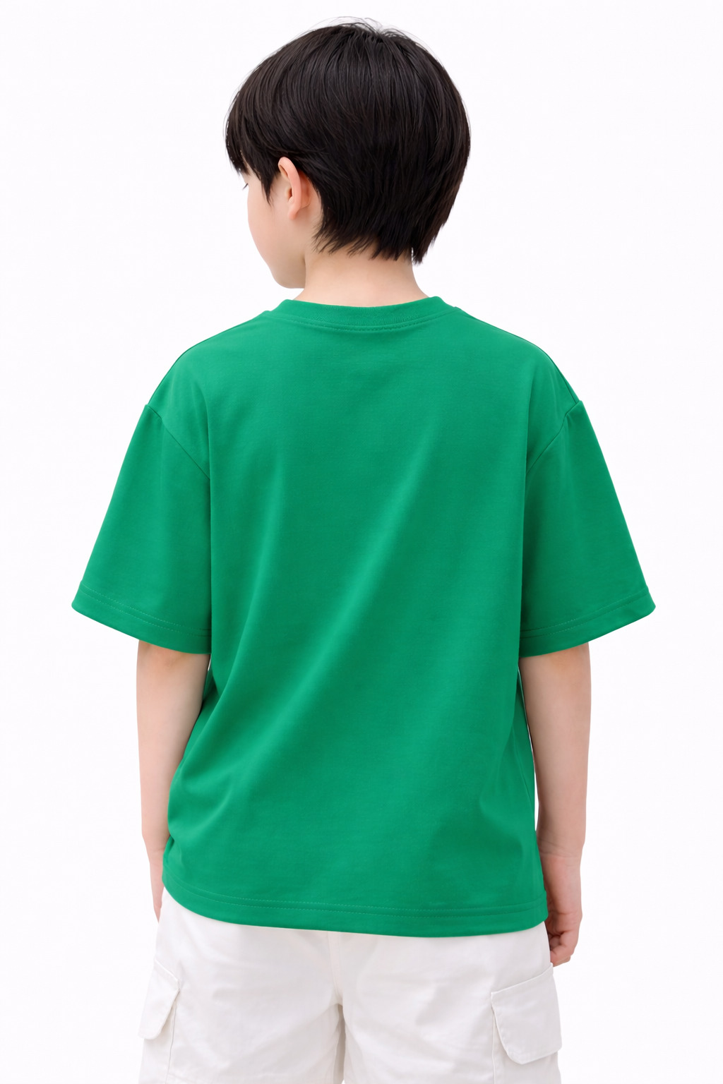 Home Kids BOYS Oversized T-shirt Pockman Boys Solid Pure Cotton Green Oversized Fit T-shirt