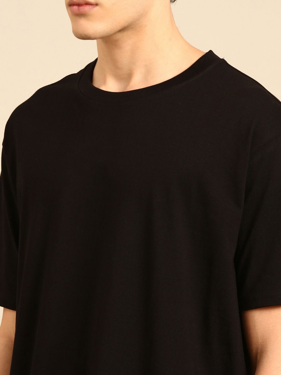 This oversized half-sleeve t-shirt is crafted from rich, pure cotton terry fabric for unbeatable comfort and structure. The relaxed silhouette drapes naturally for an easygoing yet confident look. Finished in a deep black hue, it’s a staple you can dress up or down with zero effort.