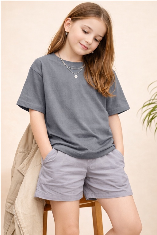 Home Kids GIRLS Oversized T-shirt Pockman Girls Solid Pure Cotton Grey Oversized Fit T-shirt