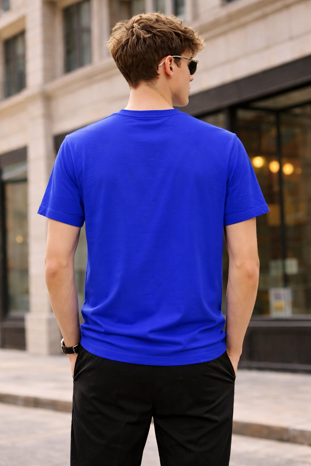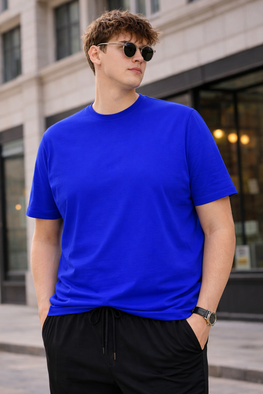 Home Men T-shirt Regular Tshirt Pockman Royal Blue Relaxed Fit Premium Cotton T-Shirt for Men